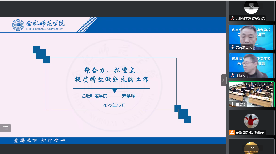 本网讯 12月8日至9日,省属高校和直属中专学校采购业务培训会在合肥召开,必赢官网资产管理处(招标办)处长宋学峰应邀作经验交流。