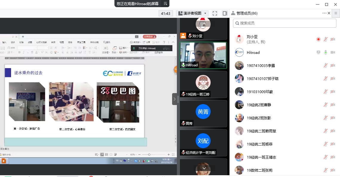 最后,郝彬介绍了公司目前的规模和发展情况,与同学们在线上进行了交流和互动,并诚邀学弟学妹们到公司参观、学习、交流。(数学与统计学院:刘全亚)