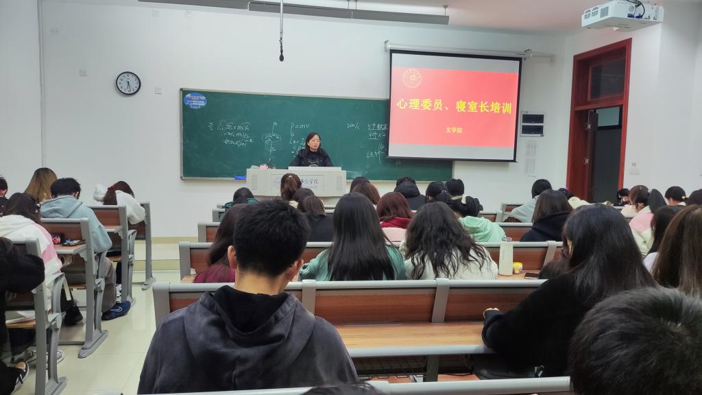 本网讯 为进一步落实“学院、系部、班级、宿舍——四级网络”心理危机防控体系,充分发挥心理委员、寝室长在大学生心理危机预防工作中的重要作用,文学院于11月24日下午在铭传楼B404开展心理委员和寝室长专题培训会,21级和22级各班级心理委员和寝室长参与培训。