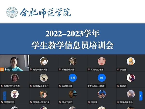 本网讯 为进一步推动学生教学信息员工作,提高信息员的业务能力和工作水平,结合学校疫情防控工作实际,学院于11月2日中午召开了2022-2023学年学生教学信息员工作线上培训会,教务处相关负责人、各二级学院工作站站长和2022级全体教学信息员参加了本次会议,会议由教务处教学质量管理科张莉主持。
