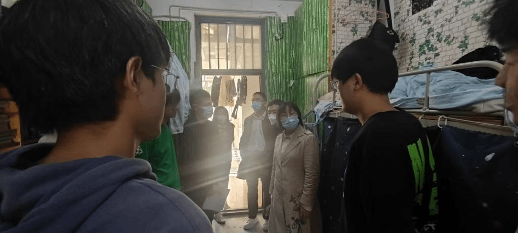 走访过程中,学院领导与学生亲切交谈。党委书记唐洁提醒同学们,国庆假期结束后,合肥地区疫情形势更加严峻,同学们要提高安全防范意识,充分理解并遵守属地和学校各项防疫规定,配合学院及时完成核酸检测和防疫信息报送。在毕业生宿舍里,老师们详细询问了大家的考研和就业准备情况,为他们送去真切的关怀与衷心的祝福。在走访过程中,辅导员和班主任老师也检查了各宿舍安全用电情况,提醒大家秋冬季节注意宿舍用电和防火安全。