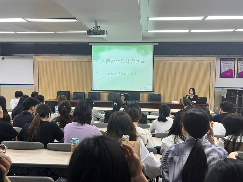 本网讯 9月29日上午,文学院“学科教学论”团队教师姜忞副教授在必赢线路检测中心附属西安路学校做题为《片段教学设计及实施》的专门辅导讲座。讲座由西安路学校张晓茹主任主持,文学院“学科教学论”团队负责人、西安路学校副校长陆学莉教授,西安路学校全体在职教师及实习教师聆听了讲座。