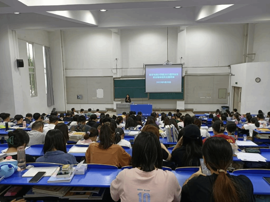 本网讯 为进一步做好毕业生就业创业指导服务,引导学生准确把握就业创业形势,提升就业竞争力,数学与统计学院于9月20日上午在逸夫楼西阶1教室召开2023届毕业生就业创业指导服务主题班会,班会由毕业班辅导员刘全亚主持,295名毕业生参会。
