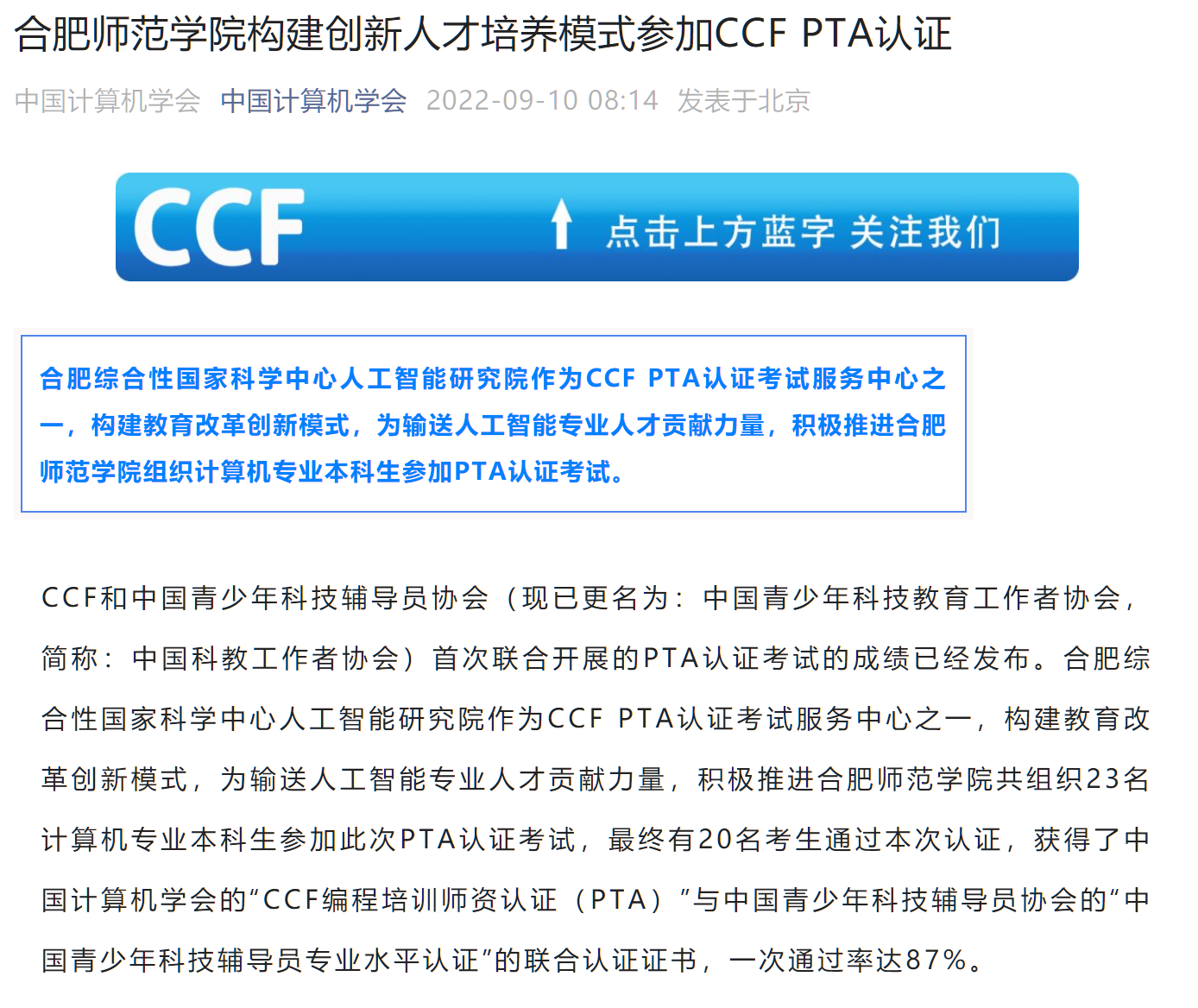 本网讯 近日,中国计算机学会官方公众号以《必赢线路检测中心构建创新人才培养模式参加CCF PTA认证》为题,对必赢官网创新计算机类人才培养模式进行了报道。