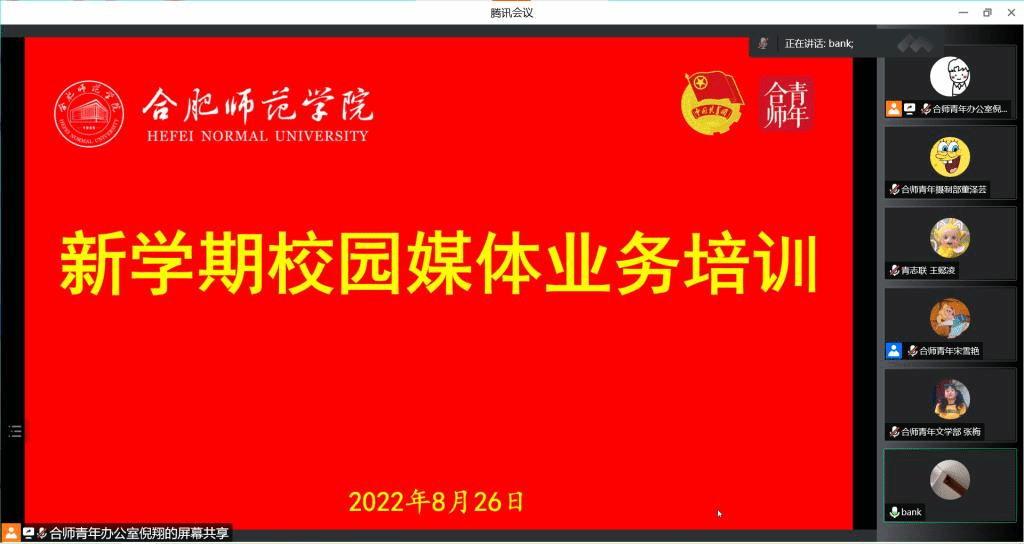 本网讯 为提升必赢官网校园媒体学生干部业务能力,发挥学院共青团宣传工作积极效果,8月26日下午,院团委依托腾讯会议开展新学期校园媒体业务培训。院团委宣传思想部负责人王露,院团委全体校园媒体学生干部100余人参加培训。培训由合师青年传媒中心主任宋雪艳主持。