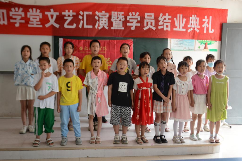 汇演结束后,“小先生”郭淑节和姚蕾为小学员们颁发奖状并合影拍照留念。