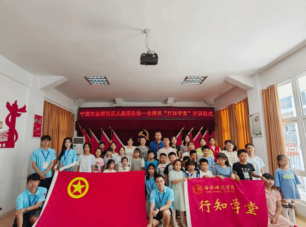 本网讯 7月12日上午,院团委宁国市金桥社区行知学堂暑期公益课堂开班仪式于宁国市金桥社区正式举办,西津街道党工委副书记林景、团市委办公室主任陈映、金桥社区副书记华晶晶、院团委学生社团管理部副主任姚瑶,五位“小先生”以及若干名小学员参加了本次开班仪式。