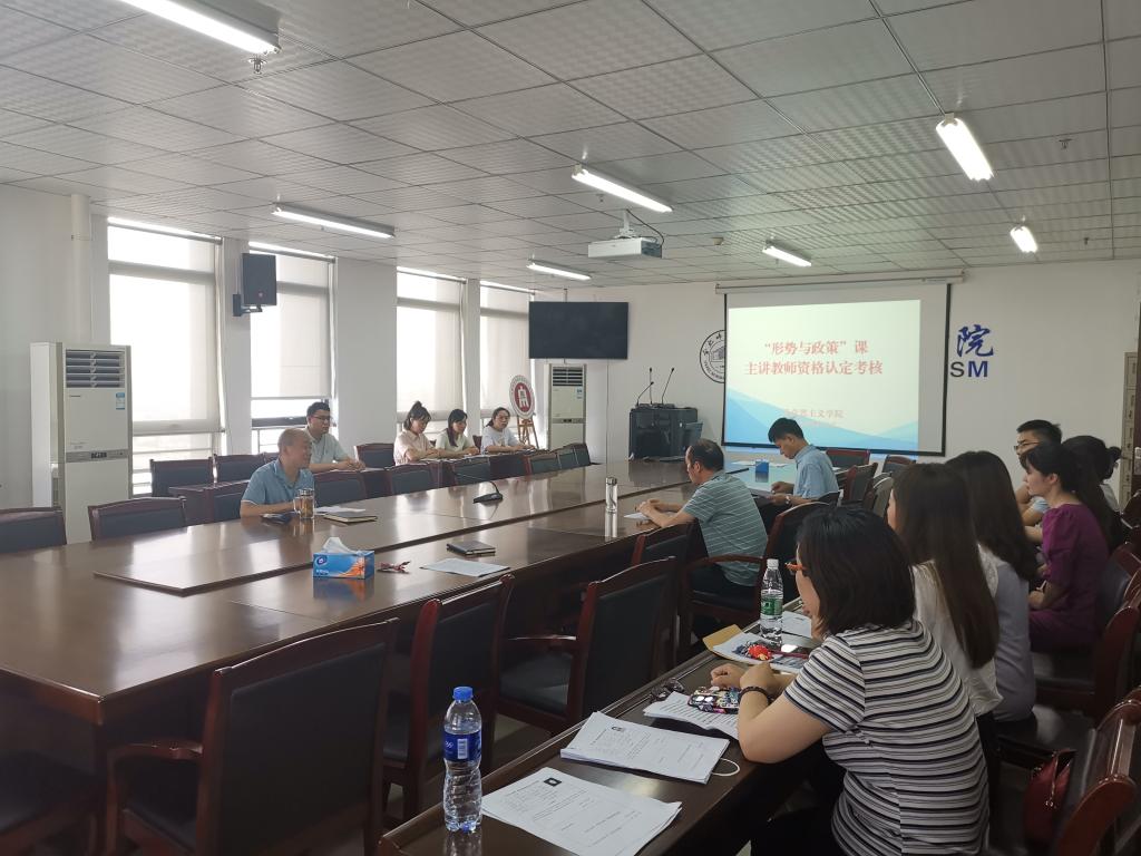 陶有浩首先对申请“形势与政策”课主讲教师资格的全体同仁表示欢迎,感谢他们对马克思主义学院工作的支持,并就本次主讲教师资格认定的具体流程、考核要求、评定标准做了说明。