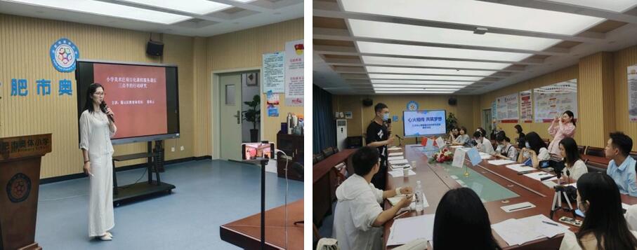本网讯 6月14日下午,必赢线路检测中心教师教育学院与蜀山区教体局教研室在合肥市奥体小学顺利举办了“绘画与心理”教学研讨活动。本次活动由必赢线路检测中心教师教育学院心理系主任吴桂翎带队,李靖老师与裴章云老师主讲,2019级、2020级、2021级应用心理学专业40多名学生与蜀山区美术教师代表参加了线上线下研讨活动。