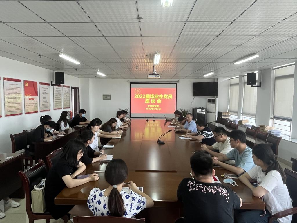 本网讯 6月7日下午,文学院在行知楼802召开2022届毕业生党员座谈会。文学院党委书记李旺生,副书记陈好,毕业班辅导员及毕业生党员代表参加会议。