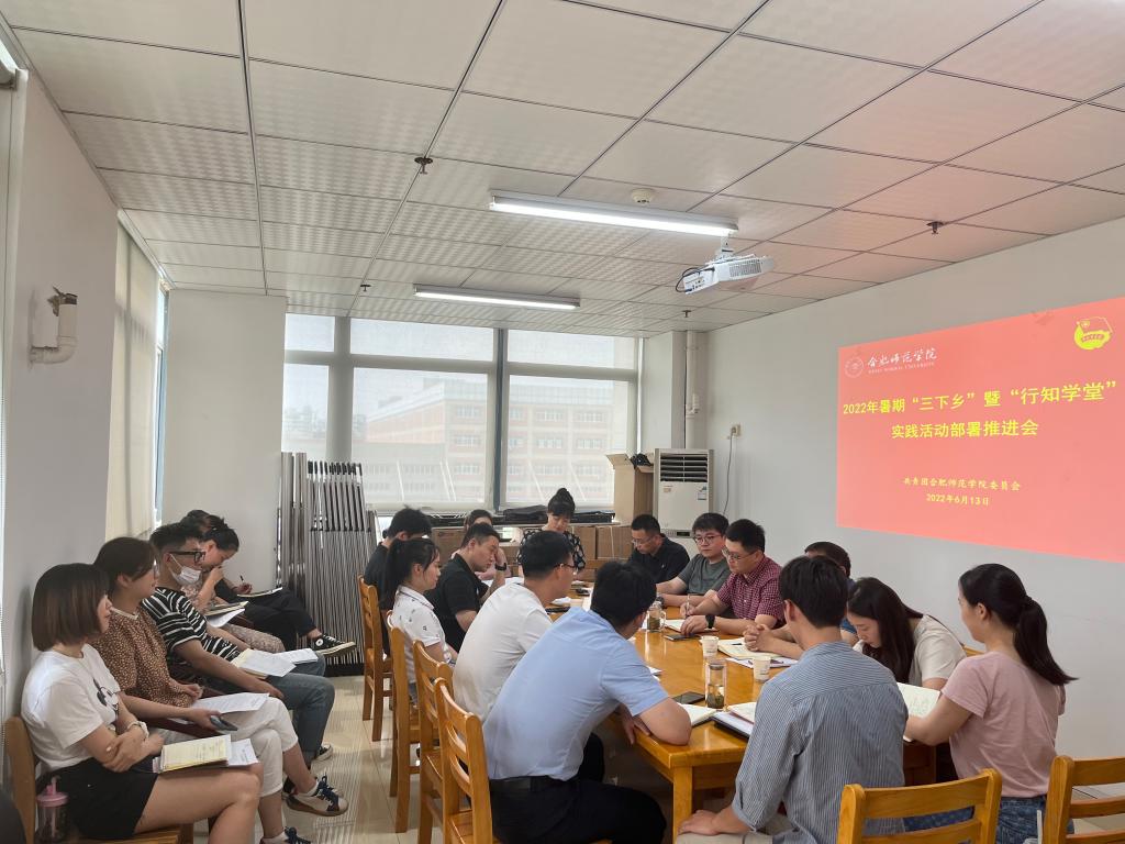 本网讯 6月13日下午,2022年暑期“三下乡”暨“行知学堂”实践活动部署推进会在锦绣校区行知楼召开。院团委全体人员,各二级学院团委书记参加会议。会议由院团委副书记刁文彬主持。
