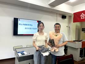 工大附中化学组的教师为每位实习生赠送了一套绣有学生姓名、学号、指导老师姓名的专属学士服,实习生们也为她们的指导老师赠送了鲜花和礼物。最后,实习生和老师们拍照留念。