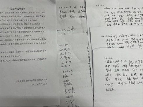 同时,辅导员还组织各年级学生签订《诚信考试承诺书》,鼓励同学们合理安排复习计划,查缺补漏,调整心态,满怀信心迎接考试。2020级英语(师范)专业的李冰洁说:“诚信是为人处事的基本准则,诚信二字也渗透在生活的各个层面,考试亦是如此,人无信而不立,作为青年大学生的我们应该要自觉做到诚信考试,诚信做人,不断完善自己。”