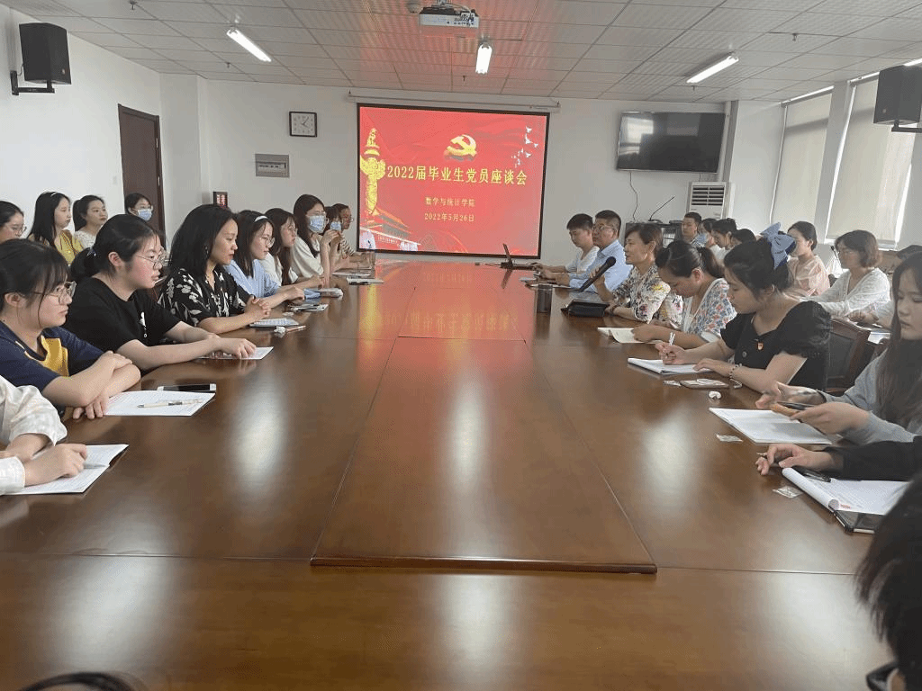 本网讯 5月26日下午,数学与统计学院于行知楼1102会议室召开毕业生党员座谈会。学院党委书记郑支农、学生支部书记周丽娜、辅导员曾飞及全体毕业生党员参加会议,会议由党委副书记陶金昌主持。