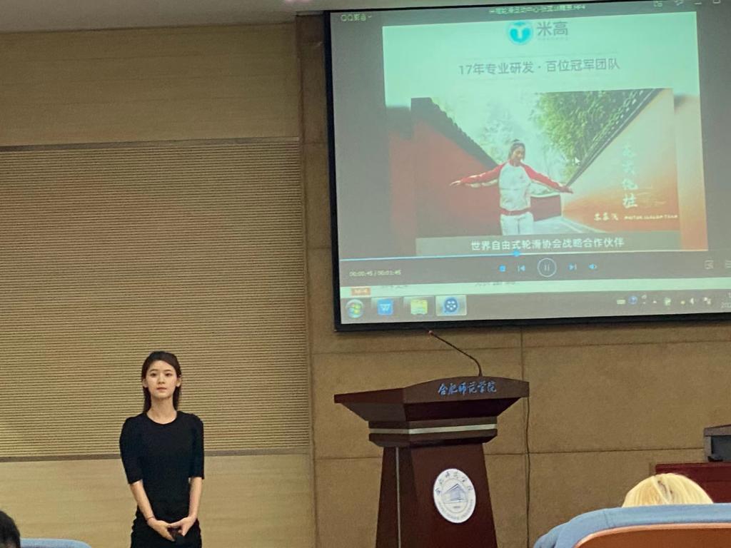 习近平总书记在纪念五四运动100周年大会上讲话,鲜明指出新时代青年运动的主题和方向,并号召新时代中国青年到人民群众中去,到新时代新天地中去,让理想信念在创业奋斗中升华,让青春在创新创造中闪光。学校的课程、大学生创业孵化项目申报、创业比赛等给了我平台和机会,更是鞭策了我的成长。我的创业成长离不开学校的鼓励与支持,更离不开学校的培育和教导。在接下来我会更加努力的发展自身,与米高轮滑运动中心一起稳扎稳打的走好每一步。(体育科学学院:张蕊 陈山山)