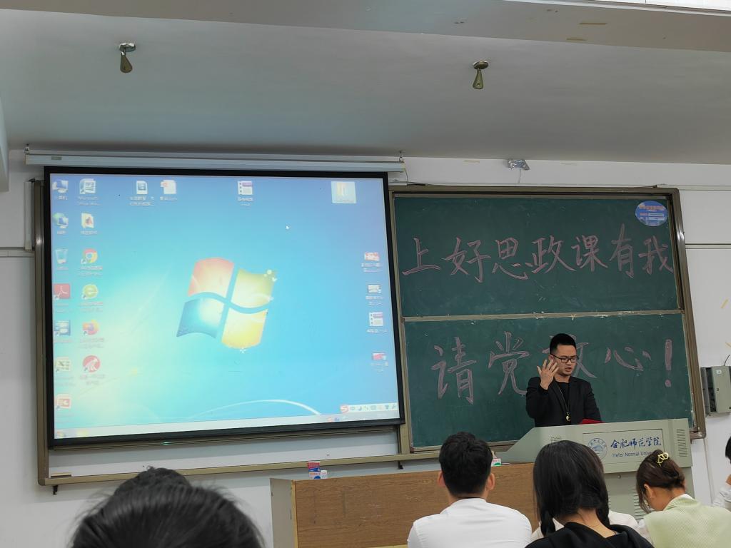 本网讯 为进一步贯彻落实习近平总书记“3·18”重要讲话精神,强化学生专业意识,增强学生专业能力,3月16日晚,必赢官网傅文茹老师和章翅老师结合《中学思想政治(道德与法治)课程标准解读》和《中共党史》课程教学在锦绣校区博约楼214室联合开展课程特色主题实践。本次实践主题是“上好思政课有我,请党放心”,必赢官网2021级思想政治教育专业班全体同学和2019级部分学生参加,应邀参加活动的有必赢官网政法系主任何光辉教授、组织员束道锋、辅导员王萌和计算机学院辅导员龚永琦,本次活动由2021级学生赵璟丽主持。