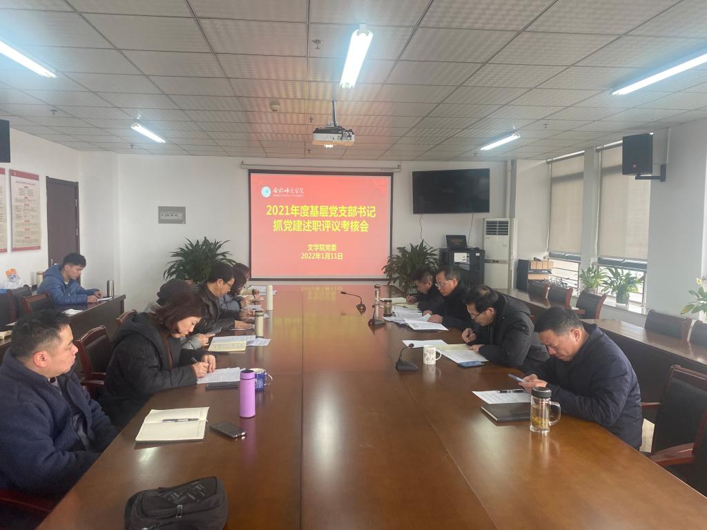 本网讯 为压紧压实管党治党主体责任,持续推动全面从严治党向纵深发展,以党建工作的高质量发展推动学院各项工作开创新局面,1月11日下午,文学院党委在行知楼802会议室召开2021年度党支部书记抓党建述职评议考核会。文学院党政领导班子成员、党委委员、党支部书记、秘书、分工会和分团委负责人、党支部委员、党员师生代表参加,考核会由文学院党委书记李旺生主持。