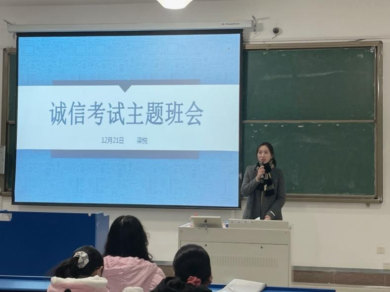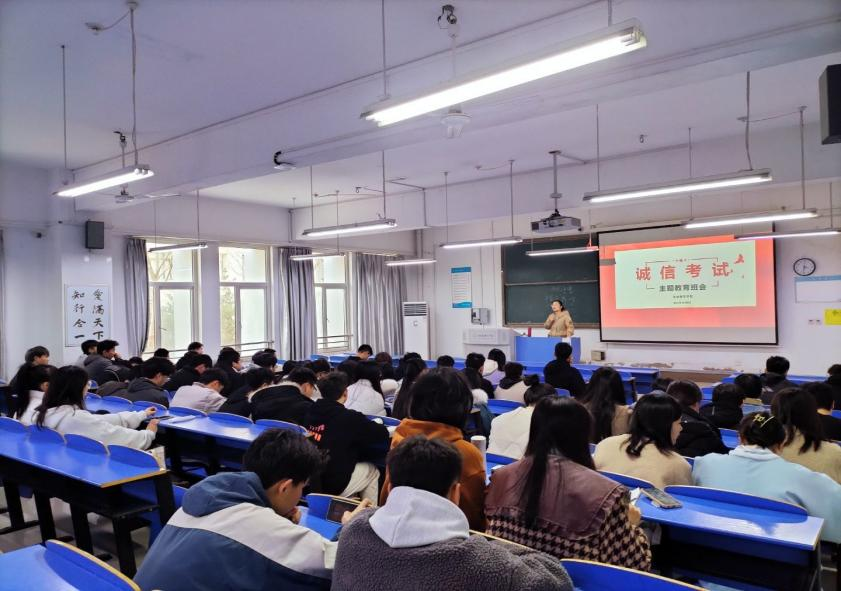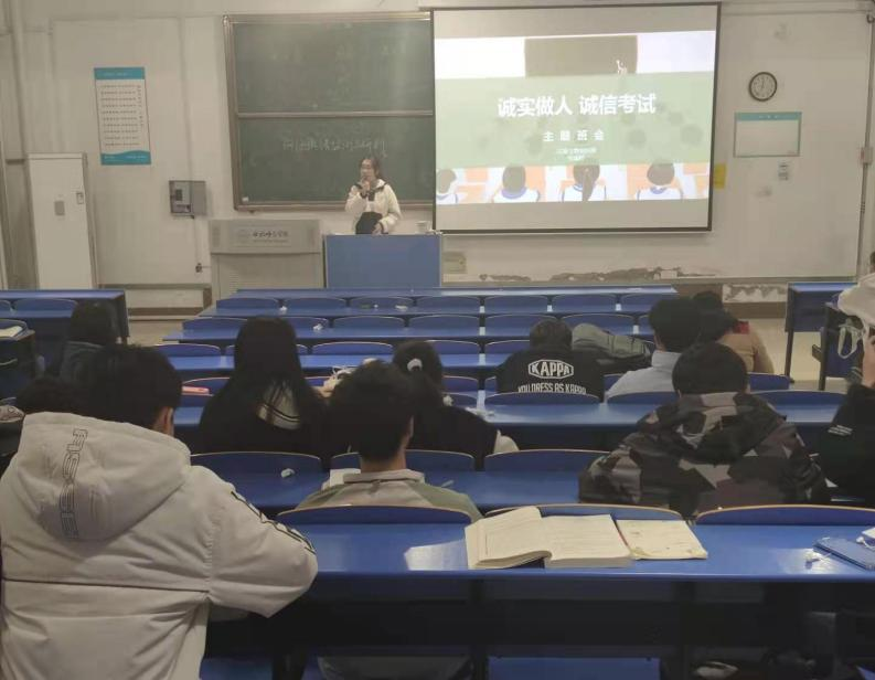班会中,辅导员向同学们强调诚信考试的重要性,引导同学们以积极的心态备战应考,严肃考试纪律。并带领大家学习学生手册上有关考试违规的相关管理办法和条例(《国家教育考试违规处理办法》、《必赢线路检测中心学生考试违规处理》等),组织签订《诚信考试承诺书》。