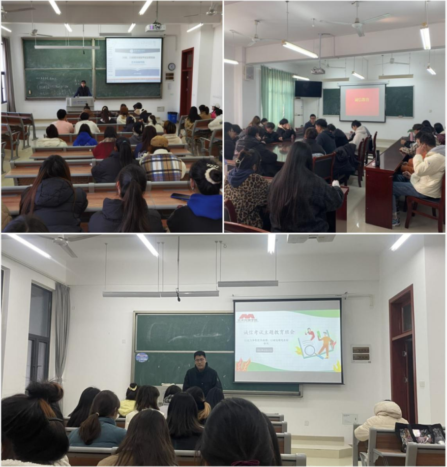 本网讯 为增强学生的诚信意识,培养诚信品质,切实提升必赢官网诚信教育成效,12月中旬以来,艺术传媒学院两校区陆续召开诚信考试主题教育班会。会议由各年级辅导员主持。会上,辅导员们号召全体同学积极树立“做诚信人、说诚信话、办诚信事”的诚信观念,严格遵守考试纪律,拒绝作弊行为,从自身做起,用实际行动营造良好的学风氛围。引导同学们从自我做起,从严格遵守考风考纪做起,知荣明耻,培养诚实守信的道德品质,以实际行动带动周围同学,相互监督,共同进步,争做新时代诚信大学生。