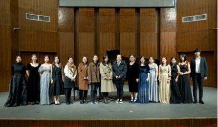 考核结束后,成绩优异者于12月2日在音乐厅举办了一场专业汇报音乐会。钢琴艺术实践的主题为“中外钢琴独奏作品展示”,在钢琴系老师的指导下,同学们选择了中外不同音乐时期的代表人物的作品。如:孙以强创作的《春舞》,储望华改编的《翻身的日子》,莫扎特的钢琴奏鸣曲K.545第一乐章,贝多芬的钢琴奏鸣曲Op.90第一乐章,肖邦的《英雄波兰舞曲》(Op.53)、柴可夫斯基的《杜姆卡》(Op.59)以及艾尔诺•多纳尼的《田园曲》等。同学们通过自己的精彩演绎向大师致敬,也体现了本场艺术实践的特色。在汇报音乐会上,音乐学院教学副院长李劲松莅临现场指导,钢琴系全体教师到场观看。