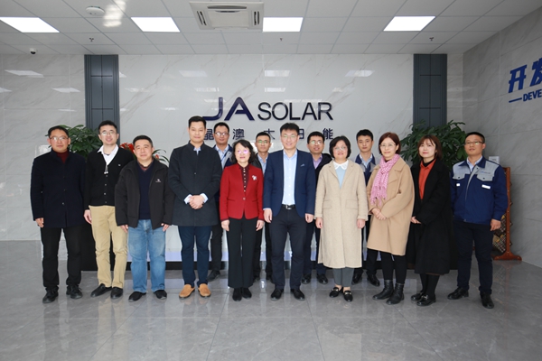 座谈会后,马平、唐洁等一行还参观了合肥晶澳太阳能科技有限公司生产车间,实地感受企业工作环境、了解产品生产等情况。