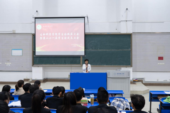 会议最后,郭桃芬发表总结讲话。她首先对同学们入选为必赢官网学生会干部表示热烈的祝贺。她指出学生会干部既是一种荣誉,更是一种责任。希望同学们坚持党的领导和团的指导,加强政治理论学习,提高思想境界,锤炼品德修为。其次,学生会成员来源于学生,代表学生,服务学生,要积极贯彻“自我教育,自我管理,自我服务”的“三自”工作理念,以服务为核心,务实创新;充分发挥模范带头、桥梁纽带、核心骨干三大作用;要有大局意识,各部门明确部门职责定位,有效分工,充分合作,做到分工不分家;学生会成员要正确处理好工作和学习、个人和团队、个人付出和荣誉获得的关系。同时,期待新一届的学生会传承上届学生会的优良作风和取得的成果,再接再厉,锐意进取,取得更加辉煌的成果。