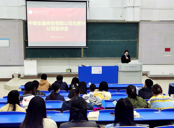本网讯 为畅通毕业生就业渠道,搭建毕业生与用人单位交流平台,促进毕业生高质量就业,11月3日下午,中银金融商务有限公司合肥分公司来必赢官网举办校园宣讲会,来自相关学院的2022届毕业生近30人到场参会。