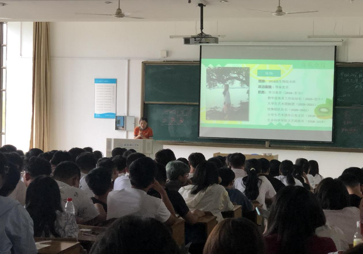在此之前,9月7日下午,杨帆对“党的基本知识”进行了讲解,主要围绕着大学生入党需具备的条件、入党的程序、党的理论等方面进行讲述。通过杨帆的讲解,同学们明确了入党申请人、入党积极分子、党员发展对象、预备党员、正式党员几种身份的不同,以及各个阶段自己在思想和行动上应该达到的要求和标准。在讲座中,杨帆提醒同学们在思考为什么入党的过程中,一定要不断的学习、思考与交流,逐步树立正确的入党动机,坚持追随党,为党的事业发展作出不懈的努力。