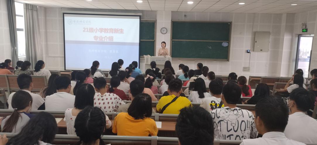 本网讯 9月8日上午9点30分,教师教育学院在滨湖校区博学楼A108召开2021级小学教育新生专业介绍会,教育系邓珍珍老师主讲,2021级小学教育全体学生参加。
