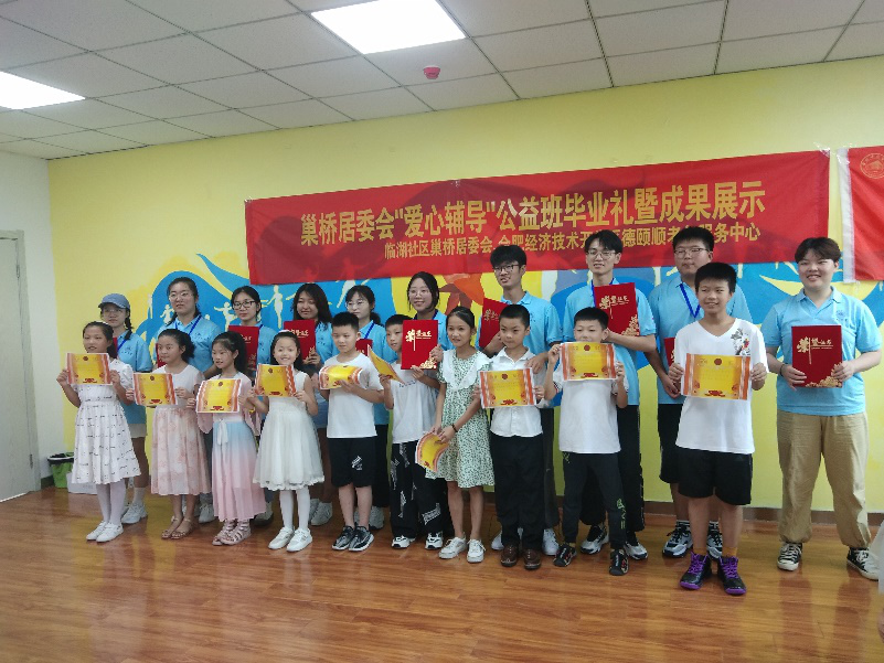 演出结束后,巢桥居委会为开办学堂的10名“小先生”颁发了荣誉证书,对“小先生”的近一个月的付出与辛劳表示肯定与感谢。“小先生”为学堂10名孩子颁发了“优秀小学员”荣誉证书,鼓励他们继续努力,不断进步。(物理与材料工程学院:王梦月)