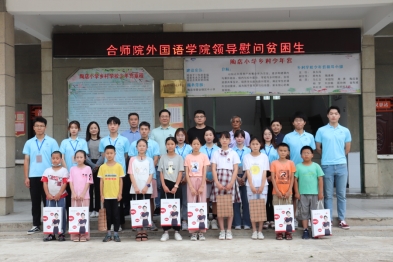 7月13日上午,副校长谢阳群、外国语学院党委副书记马四民、党委副书记马喆及分团委书记朱儒进一同前往庐阳区亳州路街道水西门社区,看望慰问“月时为卿”行知学堂的师生们。谢阳群一行在教室中与小学员们进行亲切交谈,并组织召开群众座谈会,认真听取每位同学的发言。谢阳群强调:“落实思政教育,树立正确的三观要从娃娃抓起,希望每位同学都能够在实践中增长才干,践行青春责任。”同时,马四民也鼓励“小先生”们要始终秉承“爱满天下,知行合一”的校训精神,讲奉献,勇担当,锤炼品格。