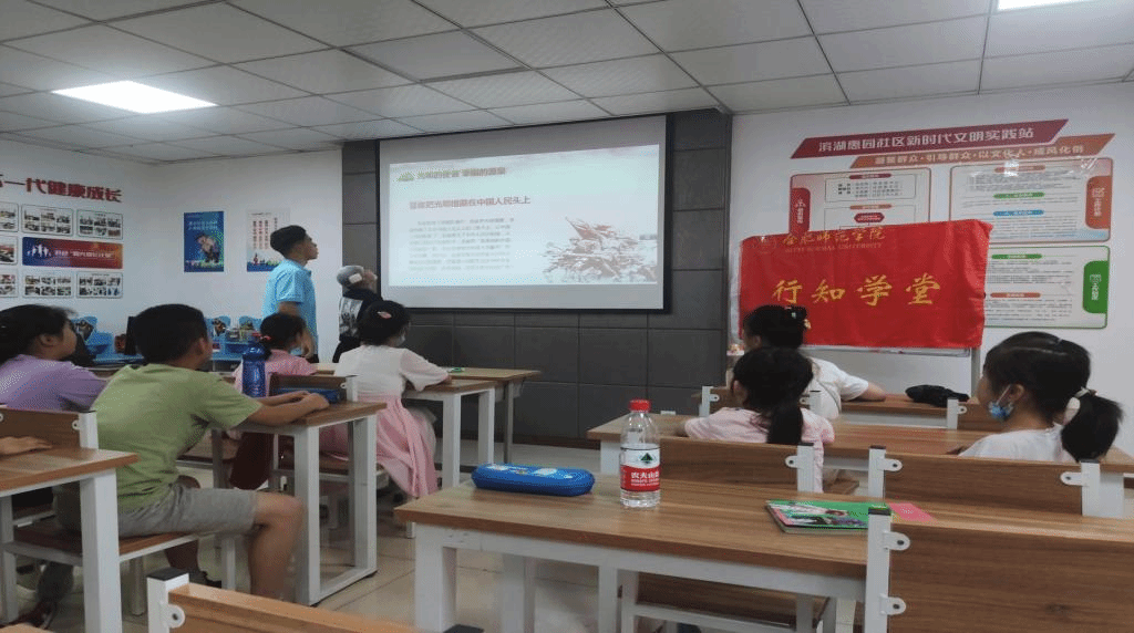 本网讯 7月13日,计算机学院惠园社区行知学堂开展“不忘初心、牢记使命”主题党史学习教育,意在让小学员们增强对基本的党史知识的了解,体会中国共产党一百年来走过的艰辛与辉煌。“小先生”李捷进行党史学习教育的授课。