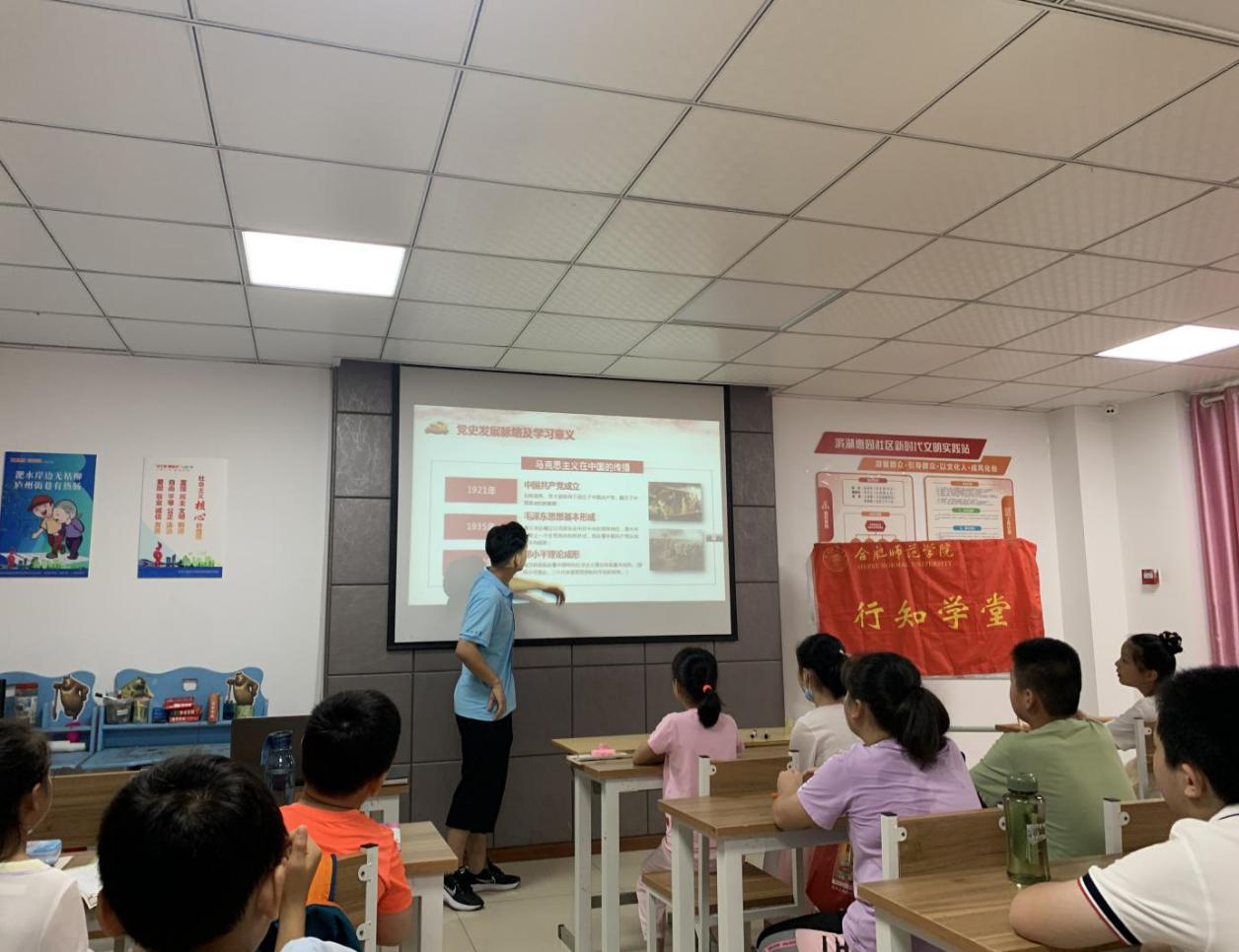 本次党史学习教育分为五个部分:“学习党史的意义”、“一百年的艰辛与辉煌”、“光明的使者,幸福的源泉”、“坚定信念”、“学习党史心得”。考虑到小学员们的年龄层和接受程度,“小先生”李捷主要以课堂互动为主,以生动形象的图文进行讲解,让小学员们尽可能的参与到课堂中来,整体课堂气氛活跃,小学员们收获颇多!