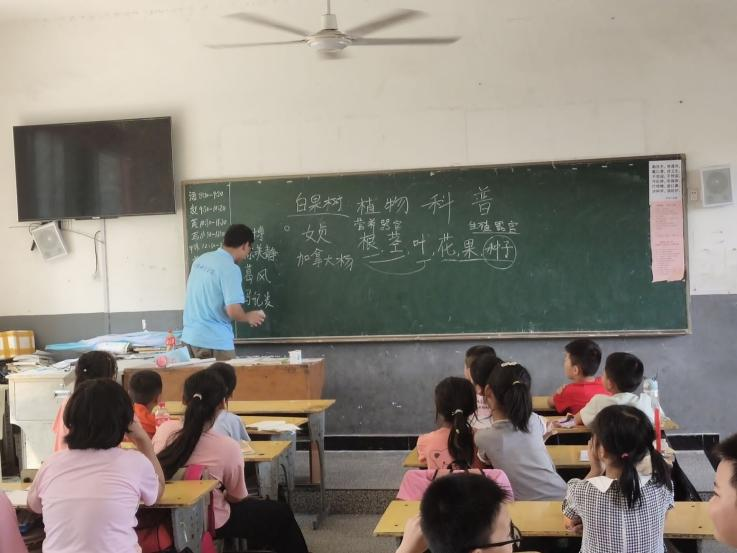 必赢线路检测中心生命科学学院2020级生物科学师范专业的6位“小先生”积极响应团中央、团省委和学校的号召,顶着烈日骄阳,秉承“爱满天下、知行合一”的校训,踏上志愿征程,践行行知精神。他们走进安徽省阜阳市临泉县张新镇马楼村文侨小学,在这里开办了“启智行知学堂”暑期志愿服务活动。本次活动得到了马楼村委会和文桥小学的大力支持,并于7月8日上午8点在文侨小学教室举行了开班仪式。文侨小学校长、6名“小先生”和40名小学员参加了启动仪式。