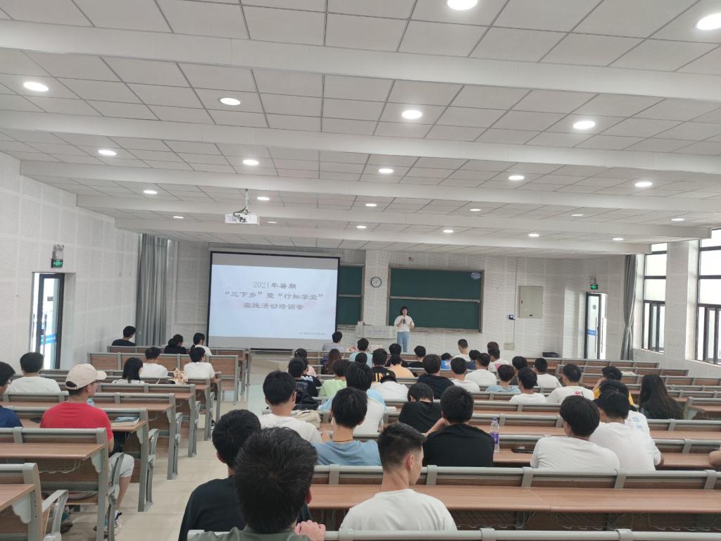 本网讯 6月24日,为积极响应学校关于开展2021年暑期“三下乡”暨行知学堂活动的要求,电子信息与电气工程学院分团委在滨湖校区博学楼108举行暑期“三下乡”暨行知学堂动员培训会。学院2020级全体辅导员、学生会全体成员、全体“小先生”共100多人参加会议,会议由院分团委负责人周玉老师主持。