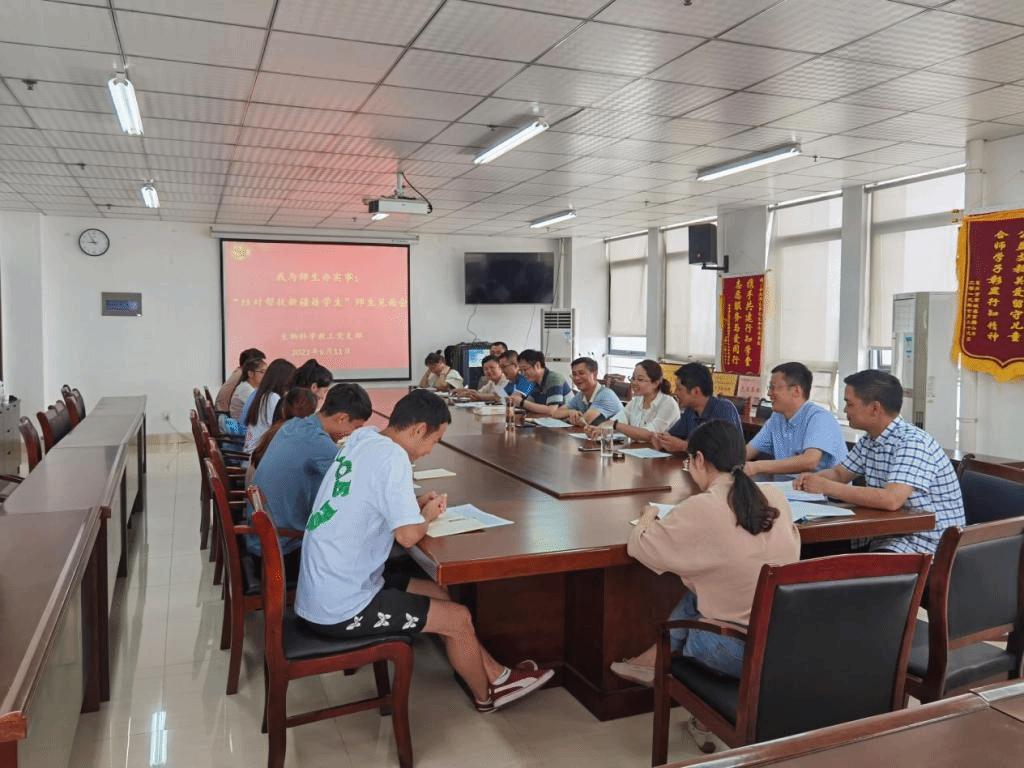 本网讯 6月11日中午,生物科学教工党支部召开党员教师与2019级和2020级生物科学师范专业8名新疆籍学生结对帮扶见面会,生物科学教工党支部书记王占军主持,生物科学教工党支部全体党员教师参加。