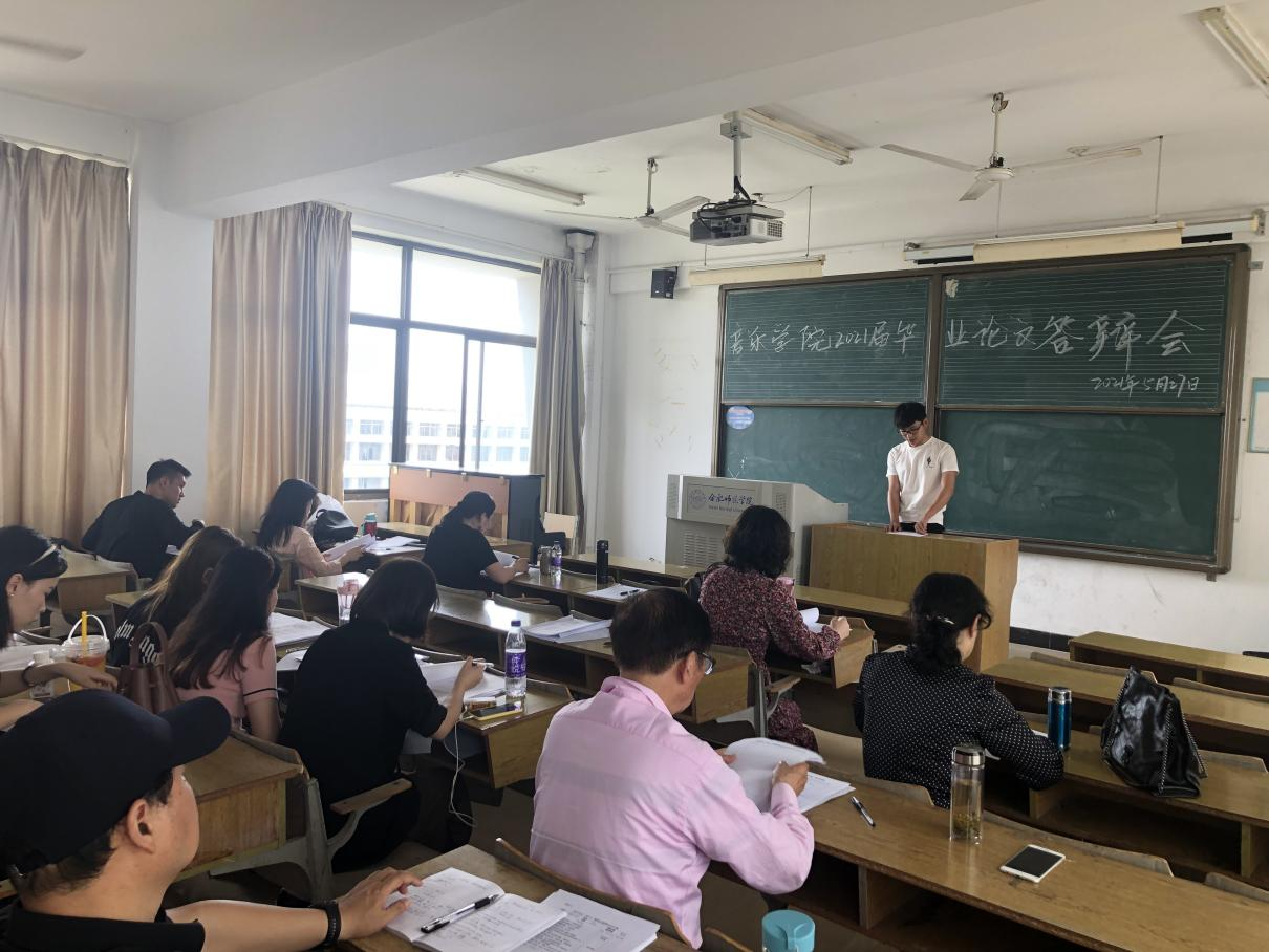 本网讯 5月27日,音乐学院2021届本科毕业论文答辩会(第二轮)顺利举行。2021届音乐学和音乐表演两个专业共计94名本科毕业生和全体论文指导教师分成八个小组,在博约楼六楼教室有序开展答辩工作。学校文科督导组专家全程观摩并予以指导。