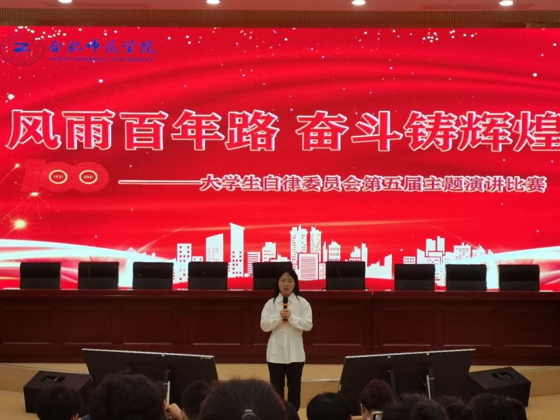 本网讯 为进一步推深做实党史学习教育,引导学生干部坚定理想信念,5月26日下午,大学生自律委员会在滨湖校区学术报告厅举行“百年风雨路,奋斗铸辉煌”主题党史演讲比赛决赛。滨湖办夏娟老师,学生工作部葛畅、赵峰老师,第十七届大学生自律委员会主席宋珂担任评委,大学生自律委员会全体成员到场观看。