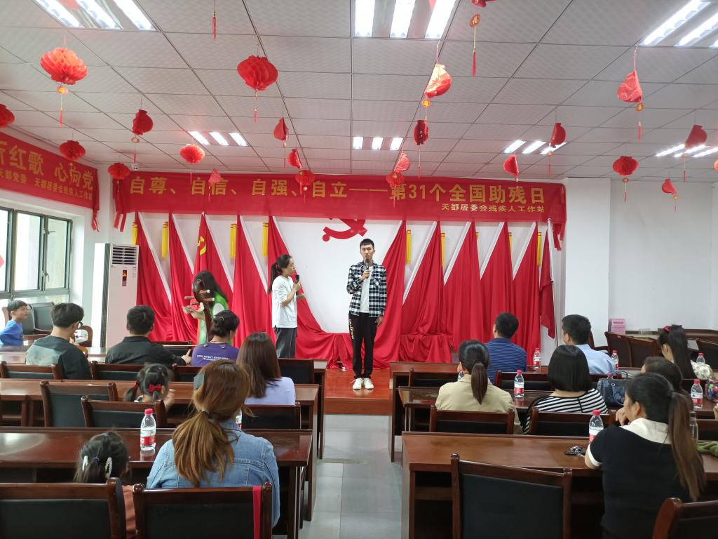 本网讯 在第31个“全国助残日”到来之际,天都居委会、天都残疾人工作站联合合肥经开区德颐顺老年服务中心于5月13日在经开区天都居委会活动室开展“心中有爱,生活无碍——第31个全国助残日”活动。合肥市经开区锦绣社区管理委员会副主任刘世扣、锦绣社区党群服务中心主任刘伟义、必赢官网团委老师姚瑶出席活动,锦绣社区家委会代表、部分残疾学生家庭参加活动。必赢官网大学生艺术团受邀表演节目。