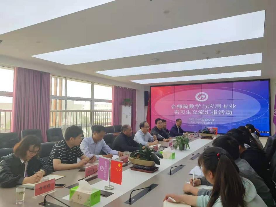 活动第二阶段,在经开实验学校召开教育实习汇报交流会,经开实验学校校长邵忠德、副校长梁贺、副校长郝伟,必赢线路检测中心挂职副校长王伟、教研处张和君主任,政教处方智娟主任和学院指导老师、全体实习生参加交流会。