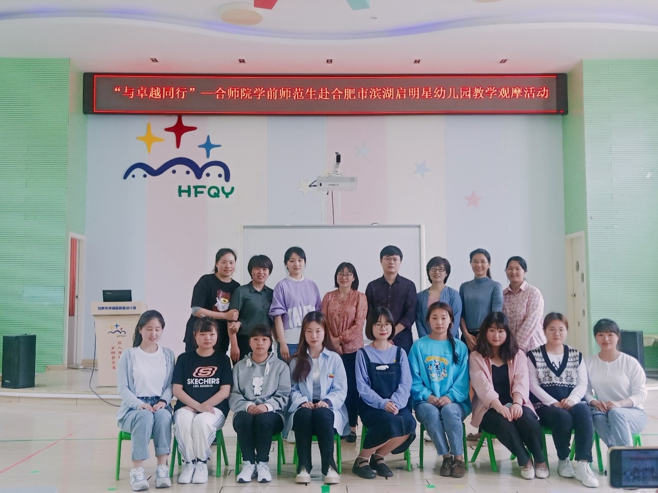 本网讯 近日,为提升学前教育师范生的专业技能,促进与幼儿园的交流,教师教育学院第二党支部组织学前教育系师生赴合肥市滨湖启明星幼教集团参加为期三天的骨干教师教学观摩活动。