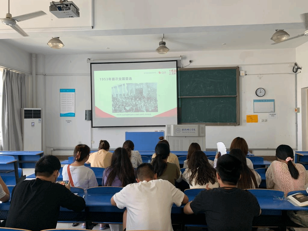 本网讯 为深入贯彻落实习近平总书记关于深化思想政治理论课改革创新和指示批示精神,全面落实习近平总书记在党史学习教育动员大会上的重要讲话精神和《中共中央关于在全党开展党史学习教育的通知》的部署安排,教育部社科司与人民网联合举办“同上‘四史’思政大课”活动。马克思主义学院积极响应学校相关文件要求,高度重视并认真开展“同上‘四史’思政大课”活动,于5月9日下午积极组织2019级、2020级同学在滨湖校区博学楼A312教室和2017级学生在锦绣校区逸夫楼A305进行线上观看直播,本次活动由2017级班长杨俊、2019级班长陈玉钊和2020级班长胡争共同主持。