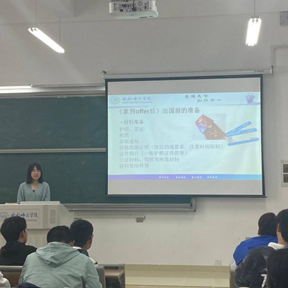国际交流与合作处程静老师为同学们讲解了如何办理出国手续,包括护照办理、留学签证办理、航空运输注意事项等,详细介绍了手续办理的各个流程。