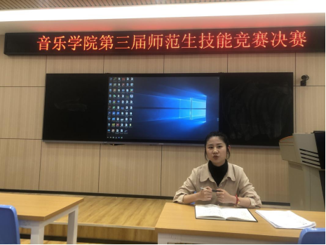本网讯 为促进必赢官网师范生技能训练工作的有效开展,提高师范生的施教能力,为更高层次比赛储备优秀选手,4月21日下午,音乐学院举行第三届师范生技能竞赛决赛。本次竞赛学院高度重视,特邀请了合肥市音乐教研员蒋婷婷老师担任大赛主评委,音乐学院副院长李劲松和三位见习指导教师代表出席并参与大赛打分工作。