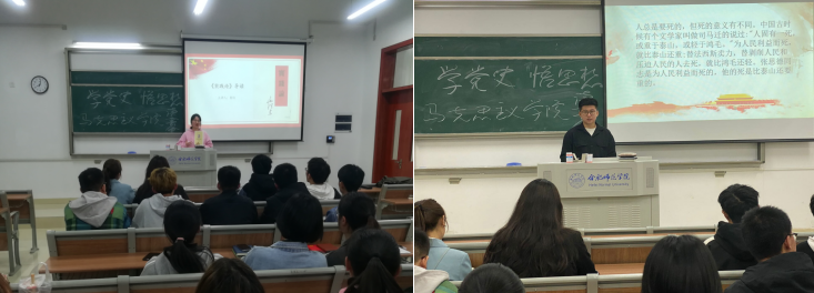 本网讯 为迎接中国共产党成立100周年,更好促进思想政治教育专业学子领会中国共产党铸就的优秀传统与精神,马克思主义学院于4月8日晚在滨湖校区博学楼B103教室举办“学党史·悟思想”读书会。读书会由何光辉主持,思想政治教育专业2019级2020级“党史学习教育”读书小组的同学参加了读书会。