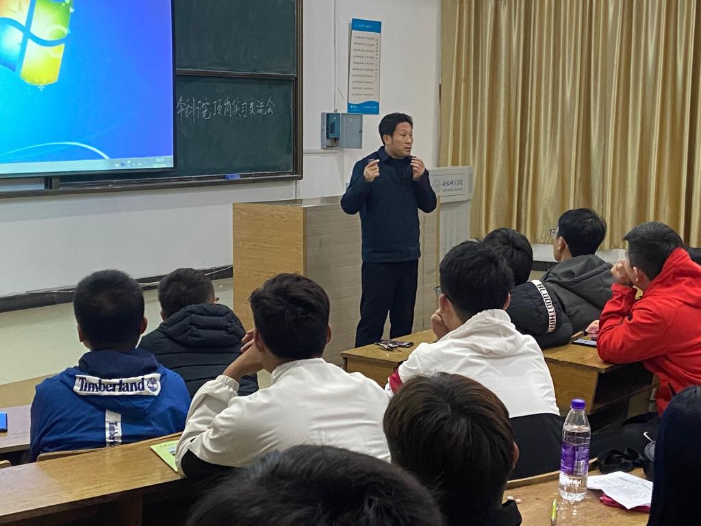 本网讯 教育实习是师范生培养的重要环节,为进一步总结经验,提升学生实习实践技能。4月6日晚,在博约楼108教室,体育科学学院召开顶岗实习交流会。体育科学学院院长宋旭出席,全体实习指导老师及参加顶岗实习的2018级体育教育、运动训练专业的全体学生参加交流会。会议由体育科学学院体育教育系副主任曹垚主持。