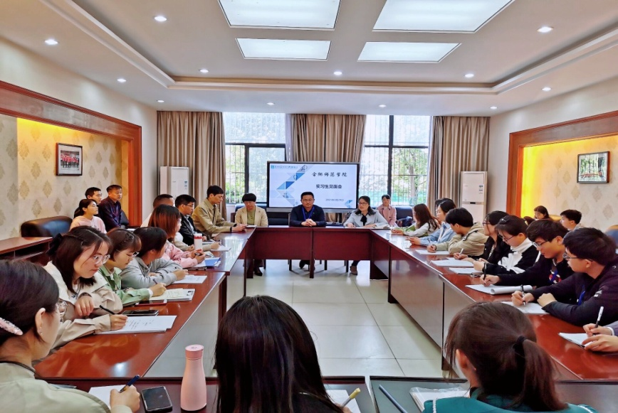 薛明浩校长代表实习学校向实习生们致欢迎辞,陈方勇主任介绍本次实习的指导老师资历和详细实习计划安排,最后由赵玉华老师向实习学生提出了实习期间的任务规划和纪律要求,并寄予殷切期望,她说:校外实习是你们开启教育事业的第一步,希望你们珍惜这次机会,努力学习真本领;实习的过程很辛苦,但也很充实;希望你们不忘初心,砥砺前行!