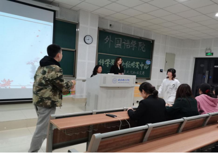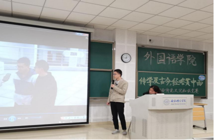 本网讯 为进一步拓宽学生的国际视野,深入推进校园文化建设。3月24日晚,外国语学院在博学楼A108举办以“传学及古今,经略贯中西”为主题的中西传统文化知识竞赛,200余名学生观看了本次比赛。