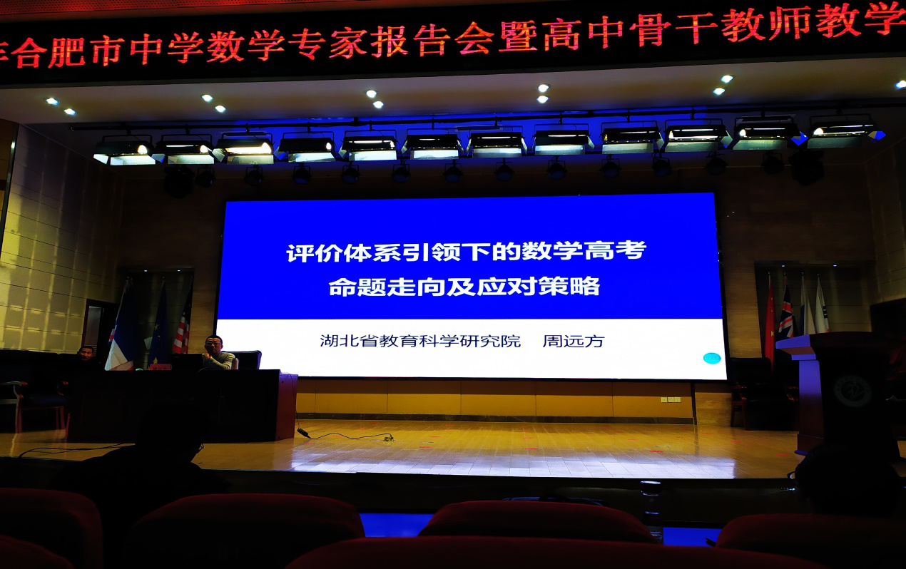 当天下午,湖北省教科院的周远方教授带来了关于“新高考数学学科命题趋势与特点解析”的报告,他从三个方面进行剖析,一是评价体系总体规划,二是数学学科实施路径,三是高考数学命题导向,给研究生呈现了一场令人震撼的讲座,让研究生对新高考有了新的认识。(数学与统计学院)