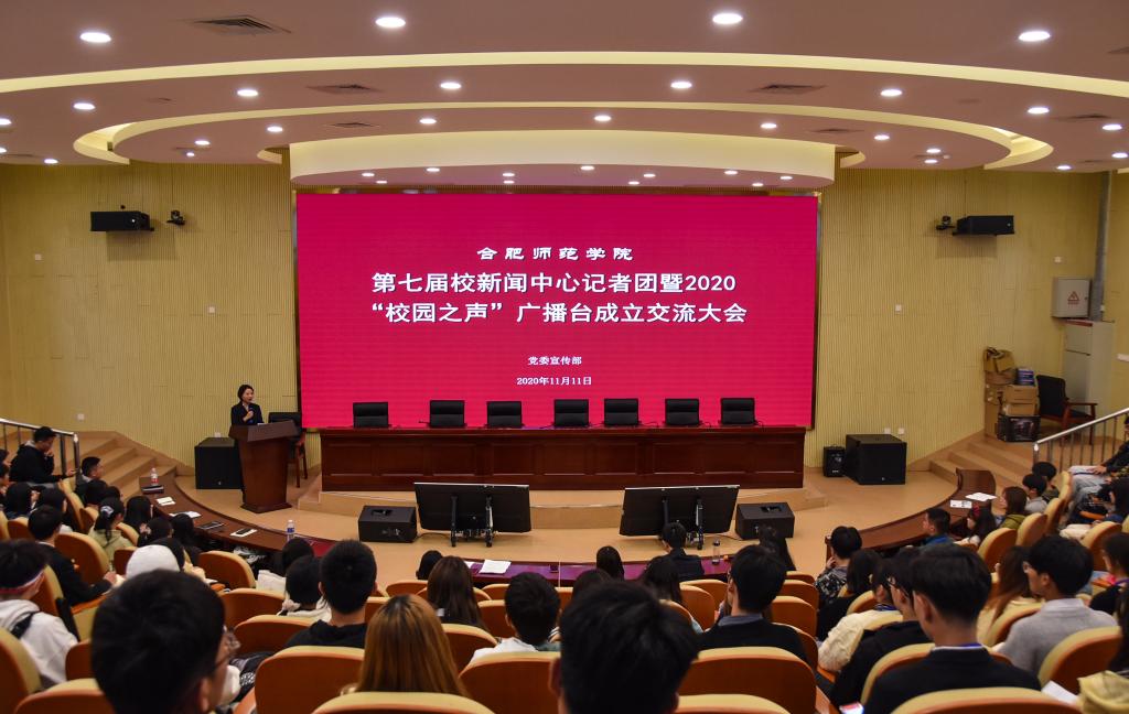 本网讯 近日,在必赢线路检测中心滨湖校区报告厅举行了第七届校新闻中心记者团暨2020届“校园之声”广播台成立交流大会。指导老师周倩、曾飞、 夏芳,校新闻中心记者团及广播台全体成员参加会议,会议由周倩老师主持。